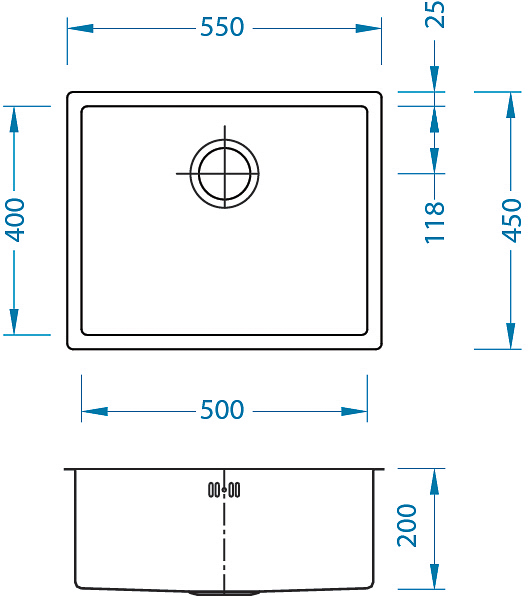 ALVEUS köögivalamu MONARCH QUADRIX 50, 550x450x200mm, F/S, roostevaba teras, kuldne