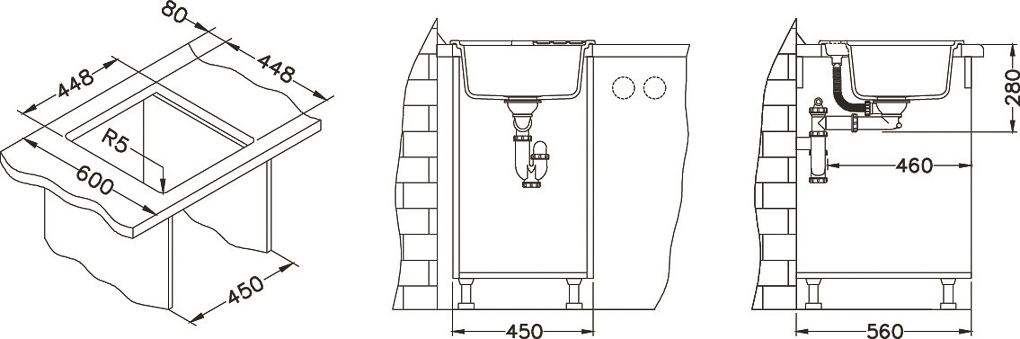 ALVEUS köögivalamu NIAGARA 20, 465x465mm, I, graniit, beige-G55