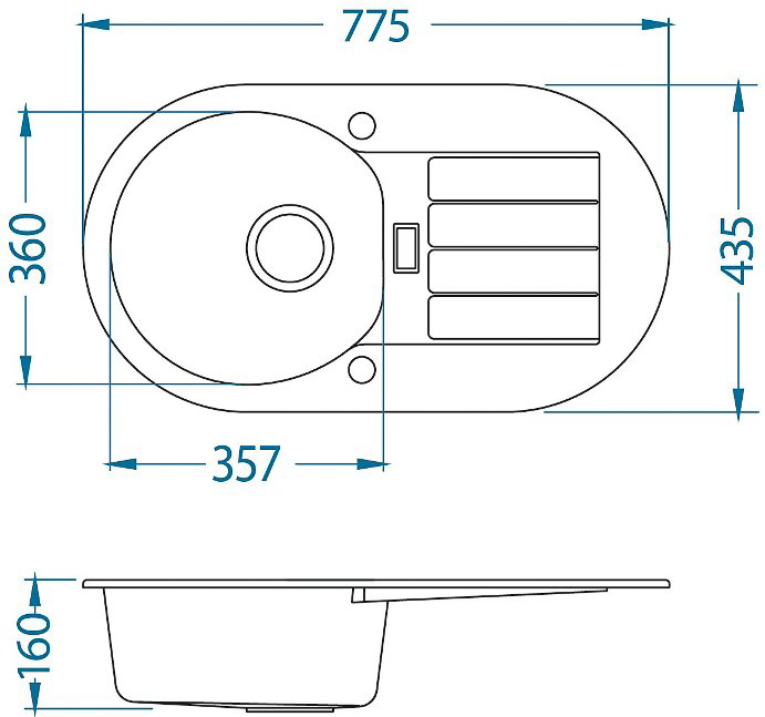 ALVEUS köögivalamu NIAGARA 40, 775x435mm, I, graniit, arctic-G11