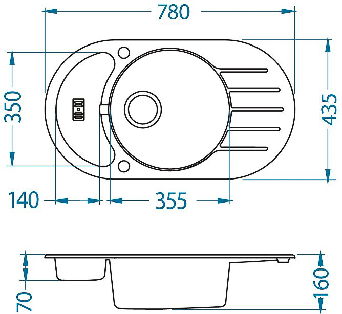 ALVEUS köögivalamu NIAGARA 50, 780x435mm, I, graniit, carbon-G91