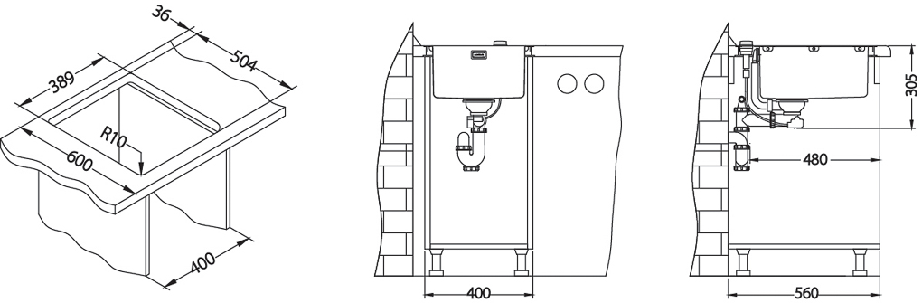 ALVEUS köögivalamu PURE 10, 405x525mm, F/S, roostevaba teras, satiin