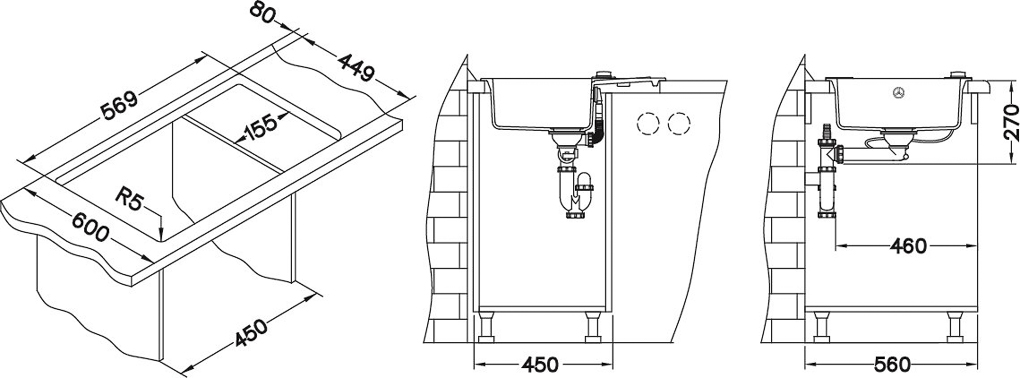 ALVEUS köögivalamu ROCK 30, 595x475mm, I, graniit, arctic-G11
