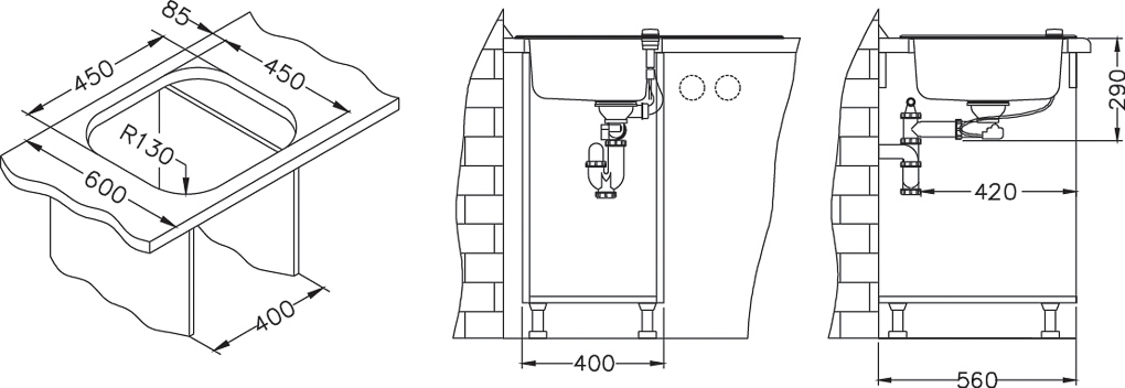 ALVEUS köögivalamu WAVE 10, 620x500mm, I, pööratav, roostevaba teras/valge klaas