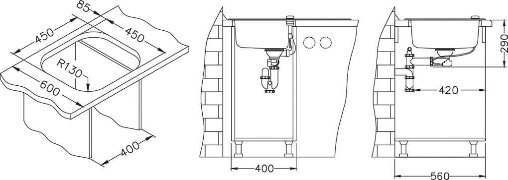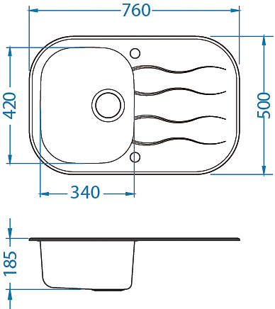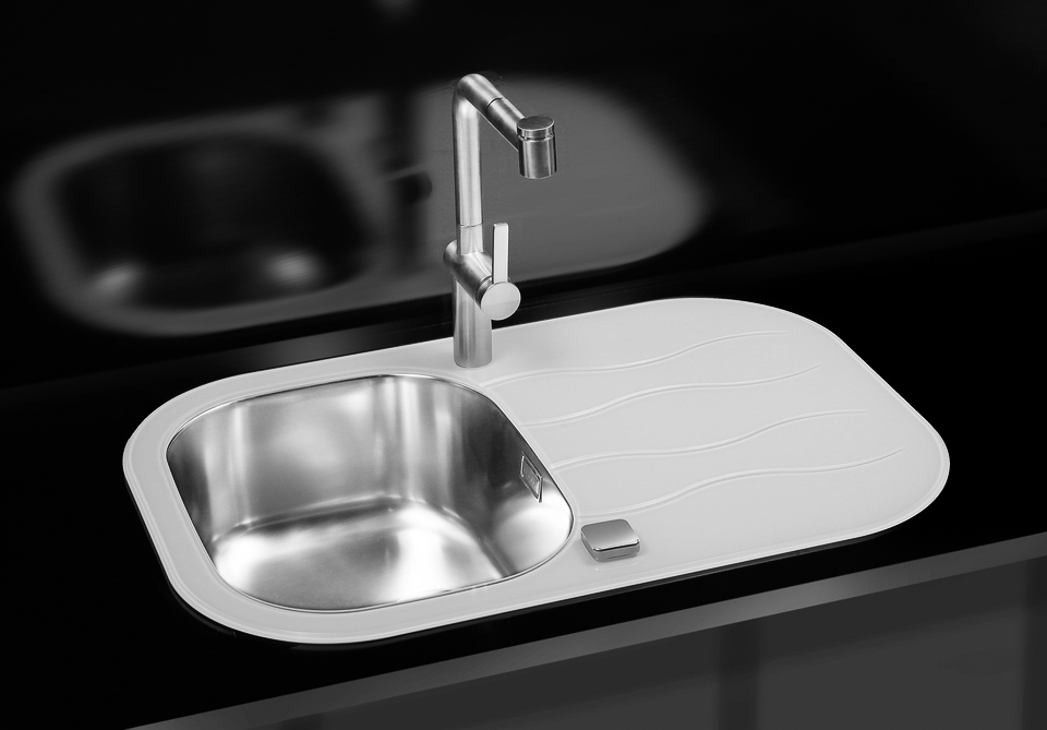 ALVEUS köögivalamu WAVE 20, 760x500mm, I, pööratav, roostevaba teras/valge klaas