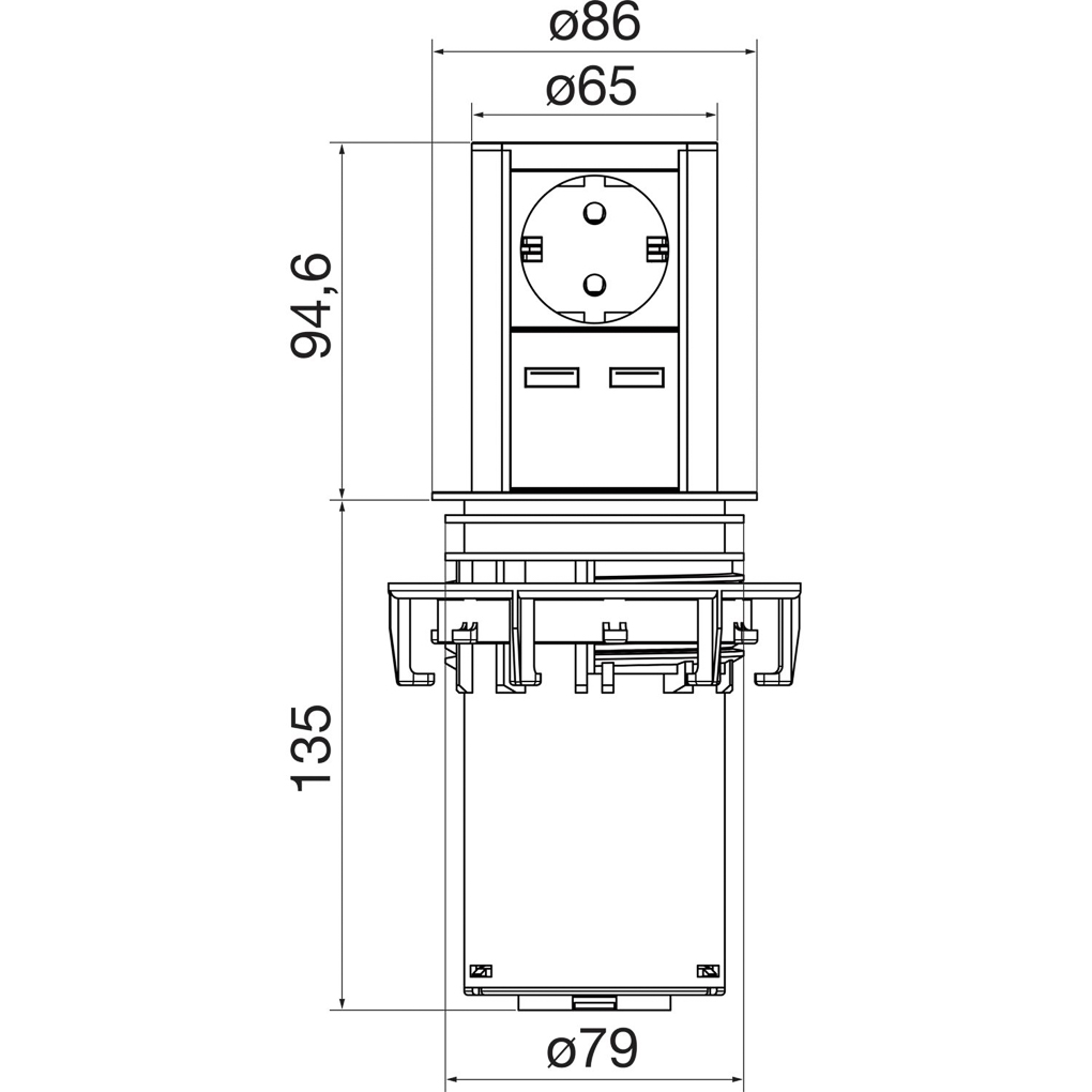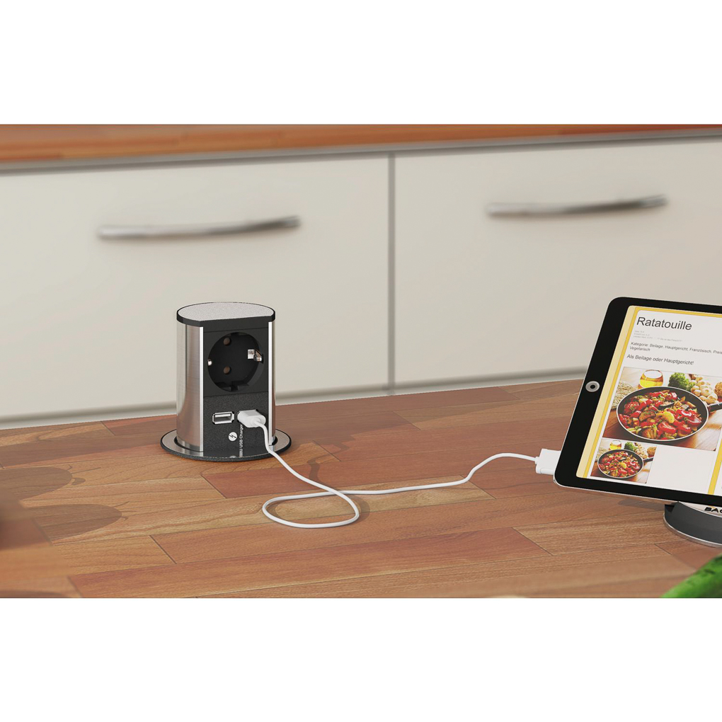 BACHMANN ELEVATOR torn pistikupesa 1x220V+1x, topelt USB, roostevaba
