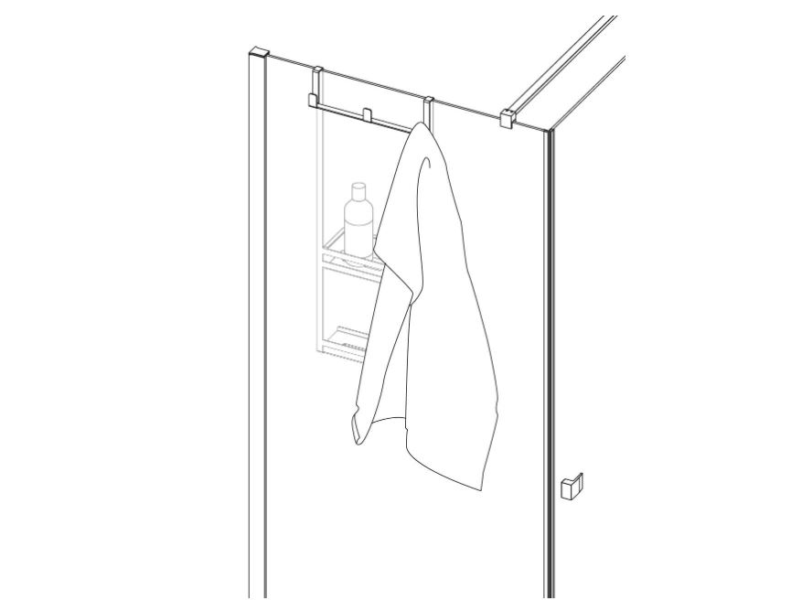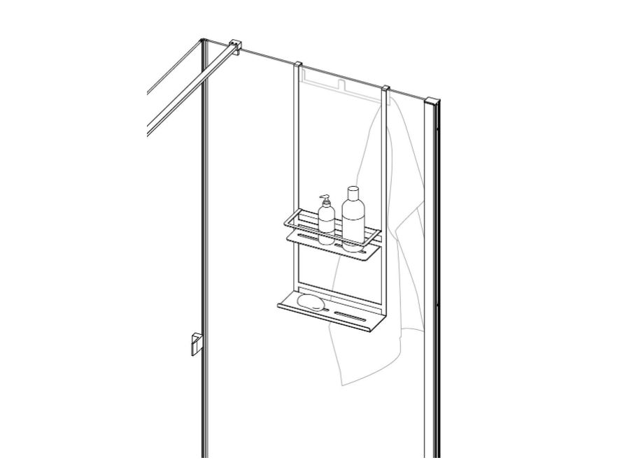 Dušikabiinile riputatav, 2 riiulit, 3 riputuskonksu, klaasi kaitsvate pehmendustega.