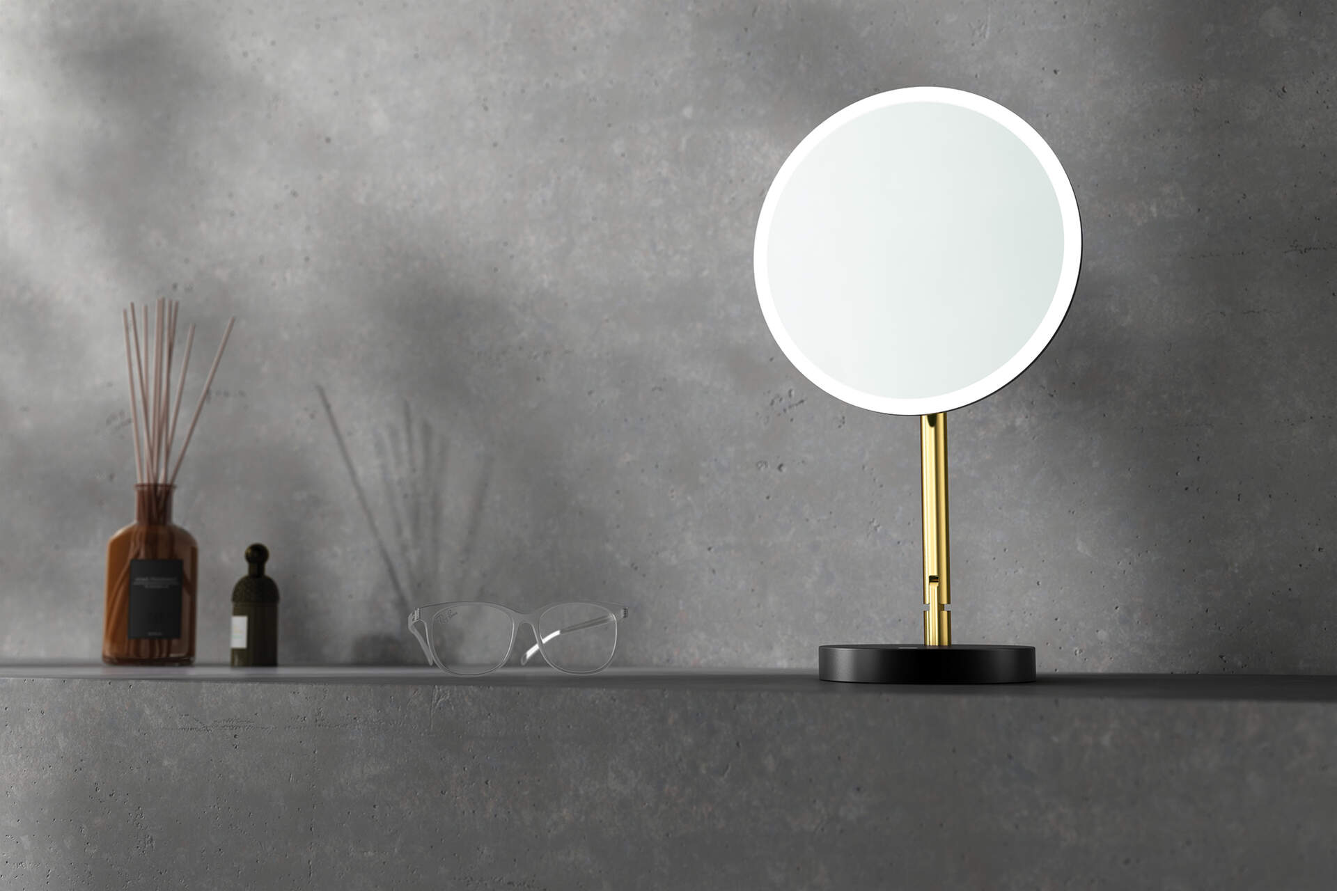 DEANTE kosmeetiline peegel SILIA, LED valgustusega, laetava akuga, messingust, kuldne