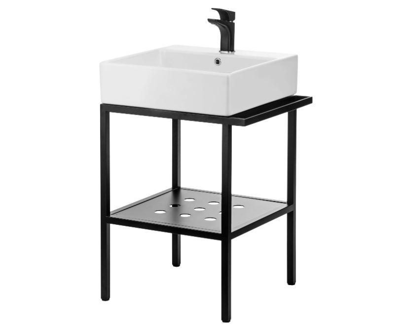 DEANTE vannitoa konsool TEMISTO keraamilise valamuga, 500x565x700mm, roostevaba teras, must