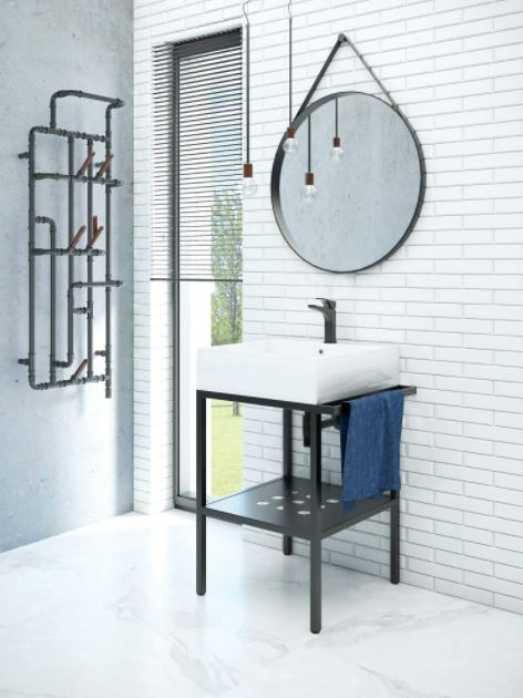 Vannitoa konsool Temisto keraamilise valamu ja käterätihoidjaga. Reguleeritavad jalad. Valmistatud roostevabast terasest.