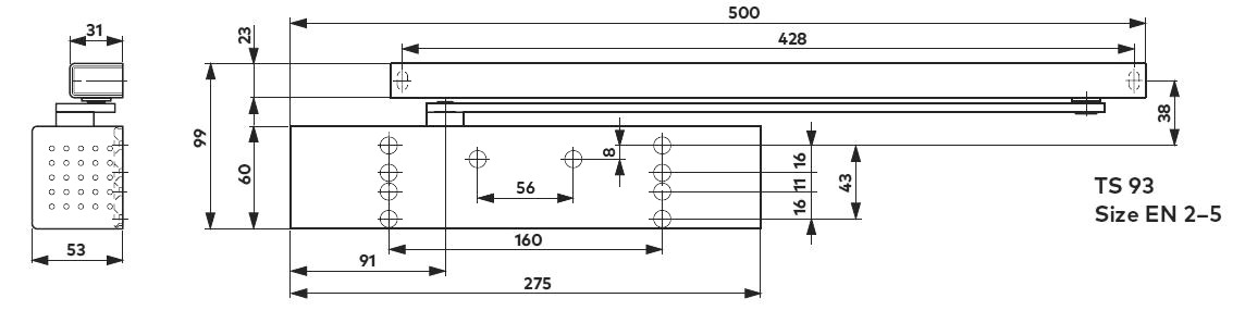 dormakaba TS 93 omab "südame kujulist" nukkmehhanismi, mis tagab suurima kasutusmugavusele tänu sulgemisjõu ühtlasele jagunemisele. TS 93 on loodud moodusüsteemi osana, mis võimaldab teda komplekteerida erinevate varraste ja sulgemissüsteemide osama. dormakaba TS 93 on testitud vastavalt EN1154