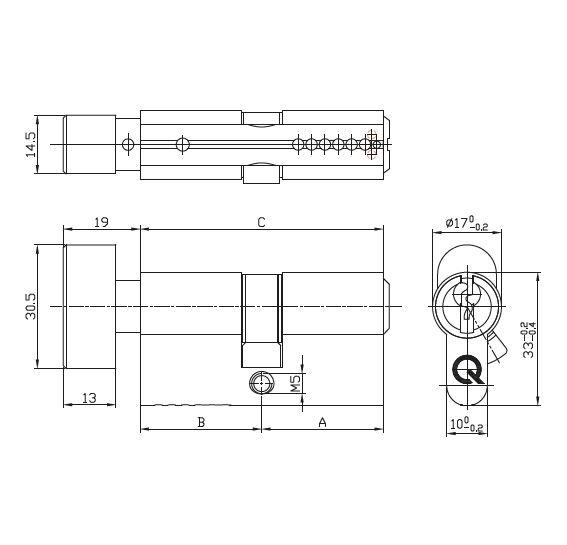 greenteQ lukusüdamik nupuga, pinnakate matt nikkel, nupul alumiinium F1 komplektis 3 võtit