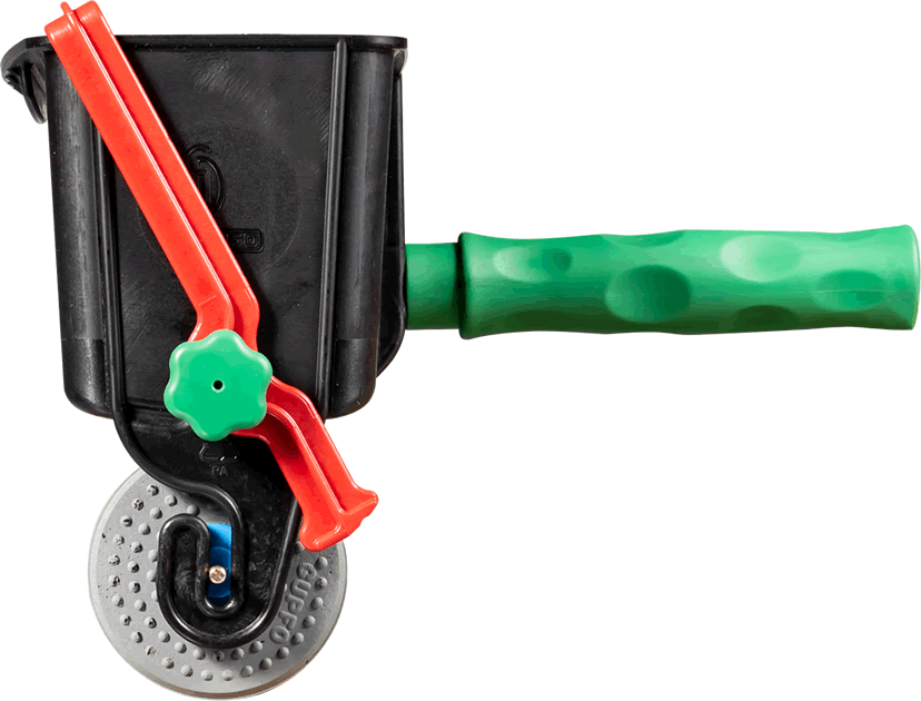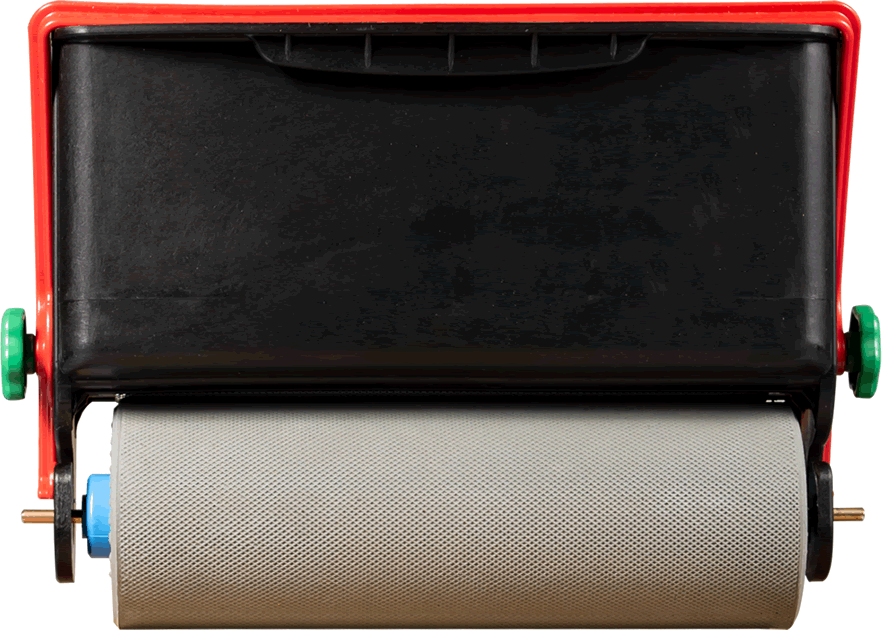 Punane vahtkummist rull – veega lahjendavate liimide pealekandmiseks; võimaldab liimitava pinna geomeetria hõlpsamat järgimist. Laiused: 75, 150 ja 200 mm.