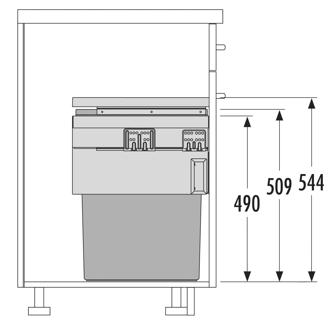 HAILO CARGO SYNCRO prügikastisüsteem 450mm 55L ülaplaadiga, K544,S400,L418, tumehall