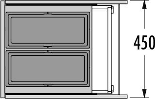 Prügisüsteem on paigaldatav valmisolevasse sahtlisse. Komplekti kuulub raam, prügiämbrid ja ülaplaat.