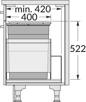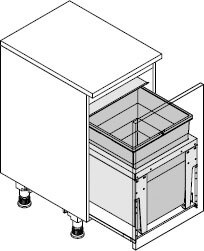 Prügisüsteem on paigaldatav valmisolevasse sahtlisse. Komplekti kuulub raam, prügiämbrid ja ülaplaat.