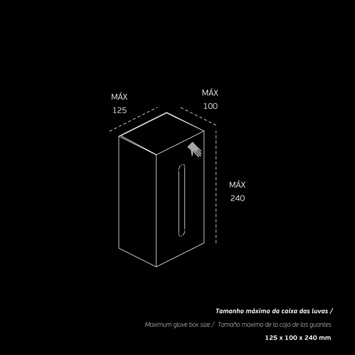 Ühekordselt kasutatavate kummikinnaste seinahoidik. Ühilduv ühekordsete kaitsekinnaste karpidega. Pakendi maksimaalne suurus: 125x100x240mm.