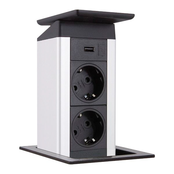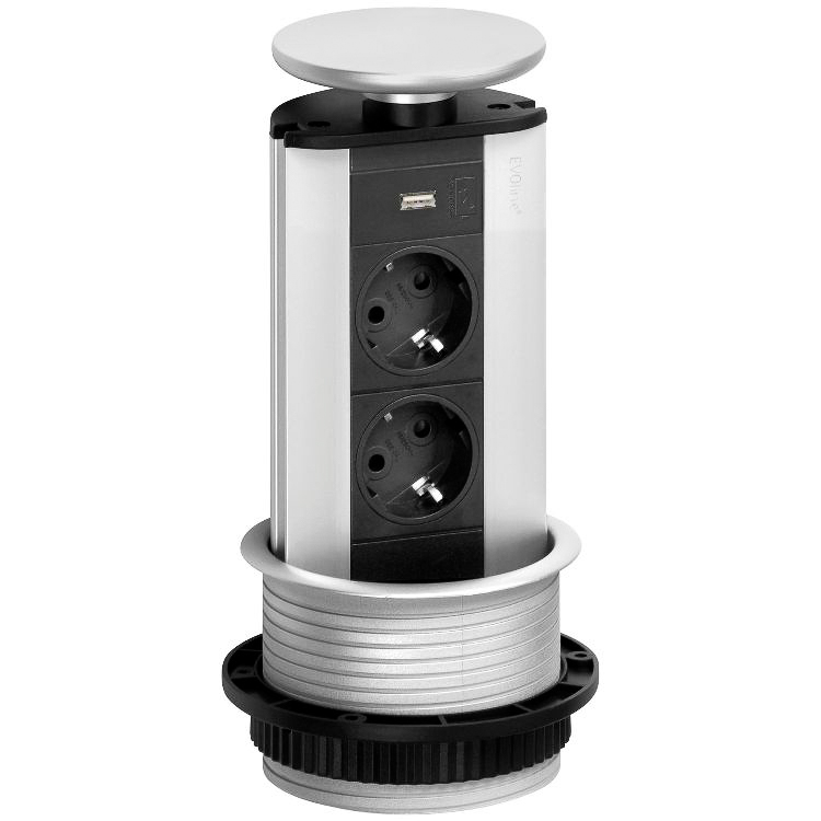 SCH EVOline Port pistikupesa torn, 2xSchuko, 1xUSB, anod. alumiinium