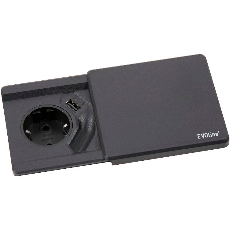 SCH EVOline Square 80 pistikupesa, 1xSchuko+USB laadija, must