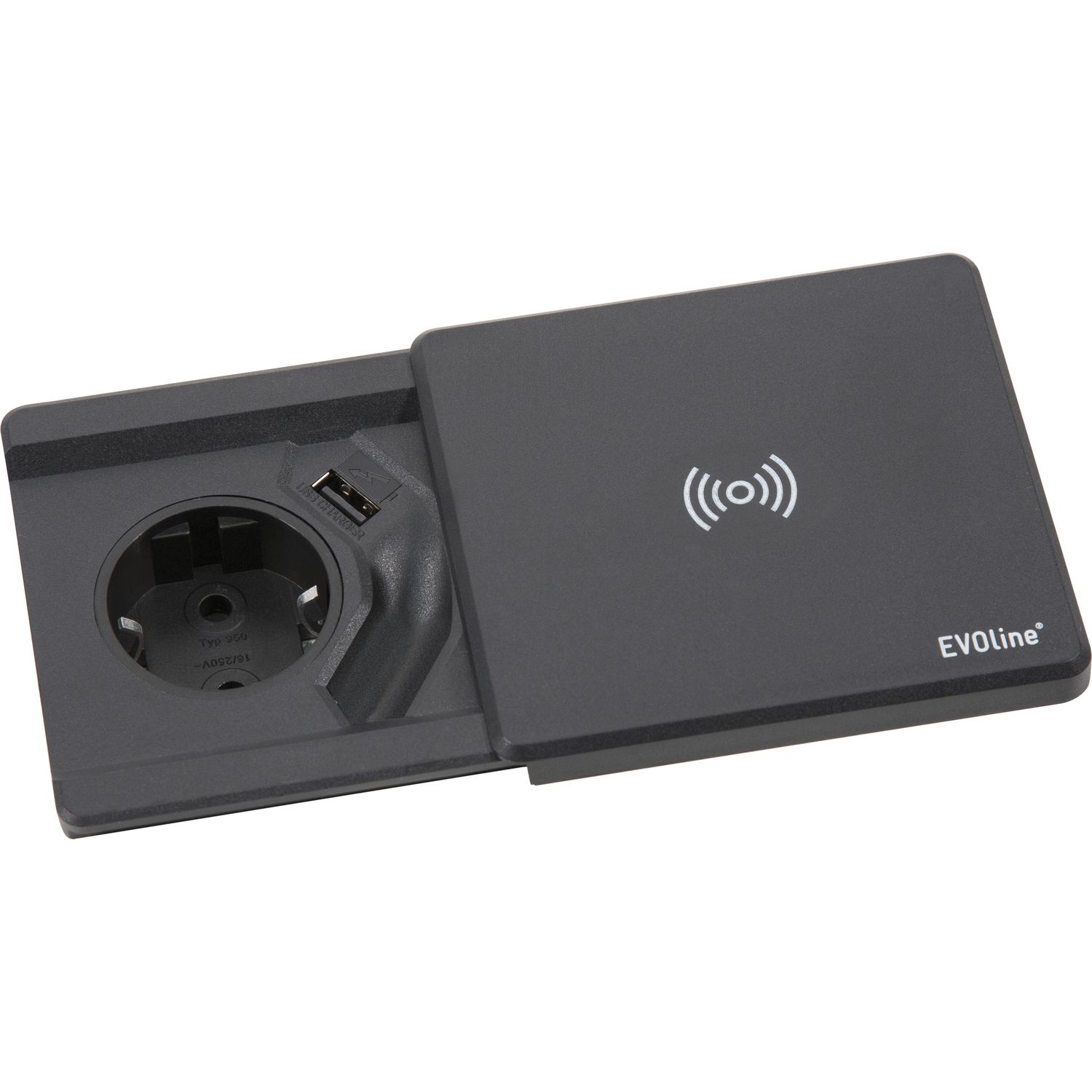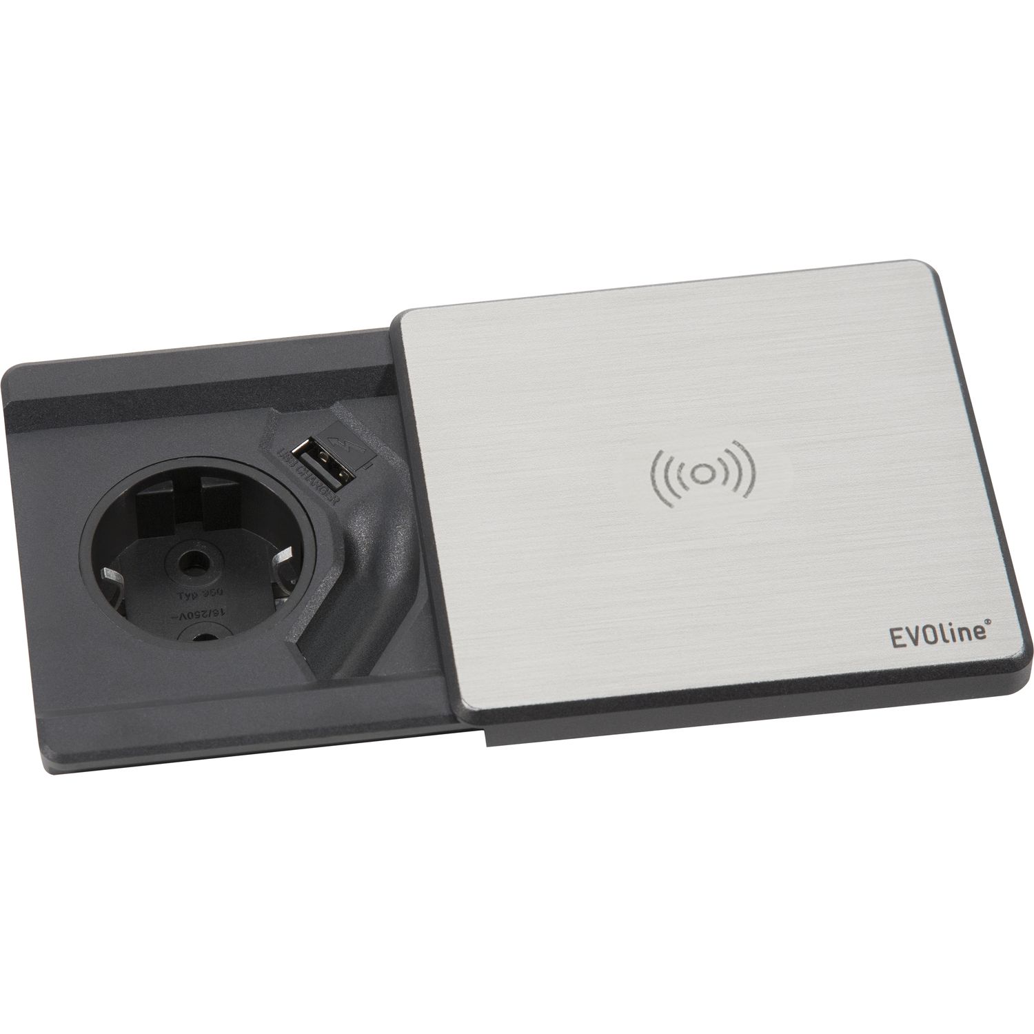 SCH EVOline Square 80 pistikupesa, 1xSchuko+USB laadija+QI laadija, must