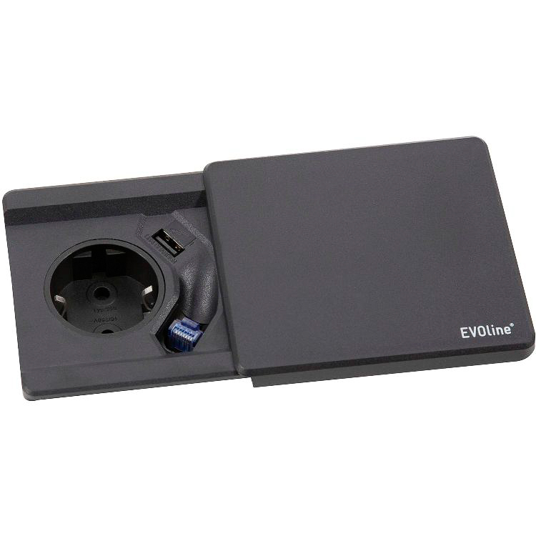SCH EVOline Square 80 pistikupesa, 1xSchuko+USB laadija+RJ45 data kaabel, must