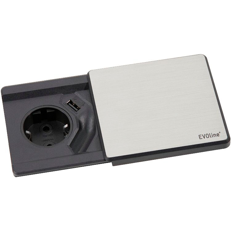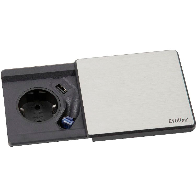 SCH EVOline Flip Top Push pistikupesa, 2xSchuko+2USB, 3-ne, roostevaba