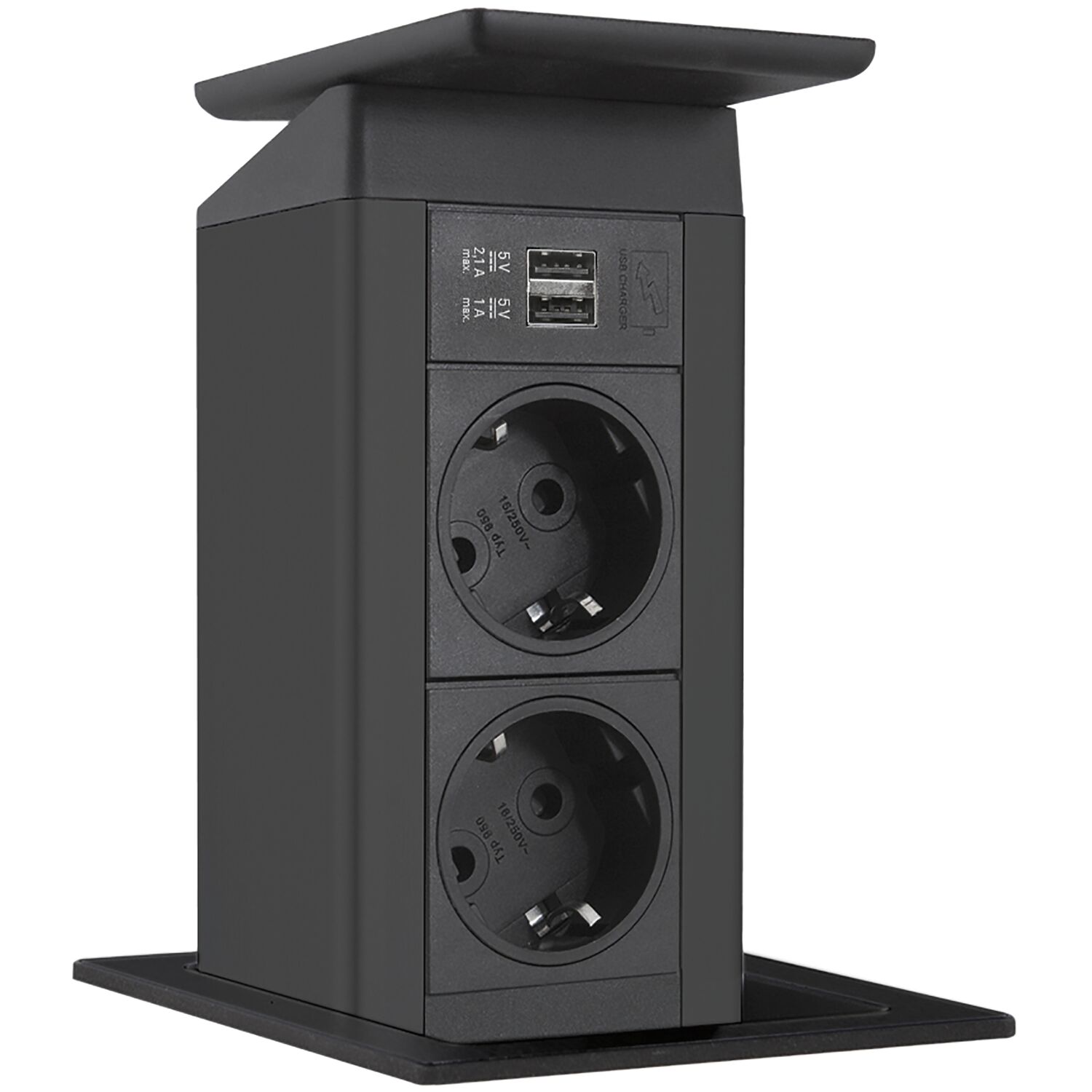 SCH EVOline Port Push pistikupesa torn, 2xSchuko,1xUSB, must