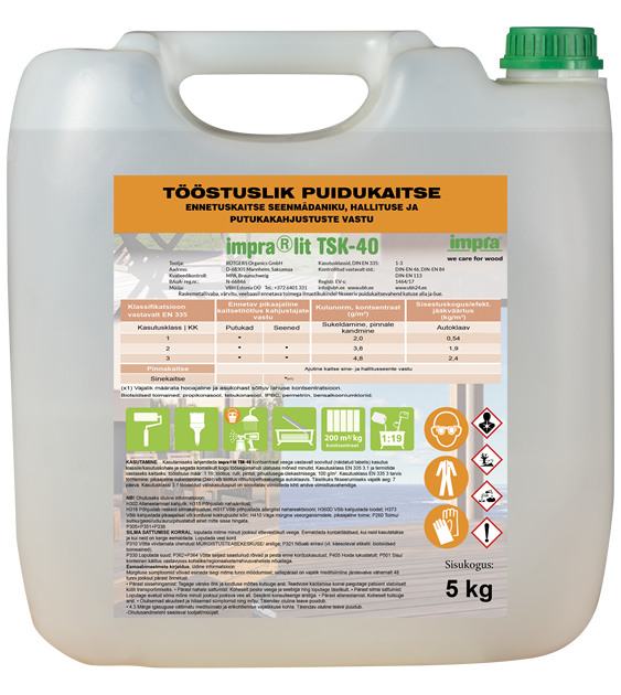 Tööstuslik puidukaitse IMPRA®LIT TSK-40: antifungi- ja termiidikaitse puiduimmutus, 5 kg kanister, kontsentraat