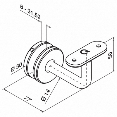 QRAIL käsipuu kinniti MOD0117 klaasile sileda jäiga tallaga AISI304 harjatud