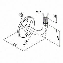 QRAIL Käsipuu kronstein seinakinnituseks, keermega M10, AISI304, harjatud