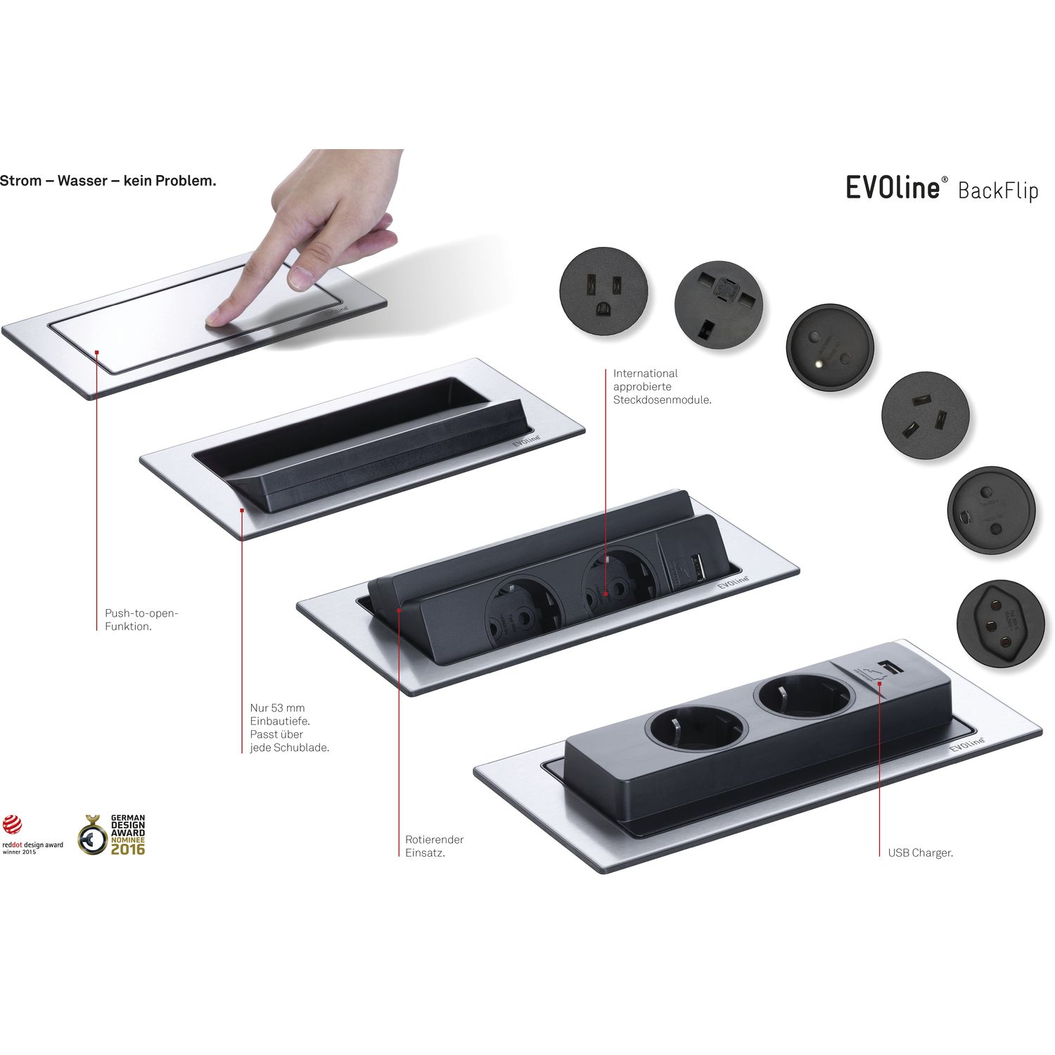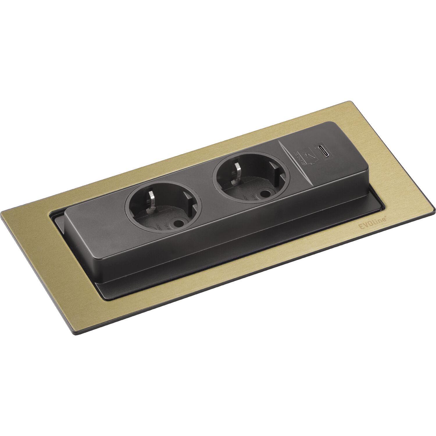 SCH EVOline Backflip pistikupesa, 2xSchuko+1xUSB-C, messing