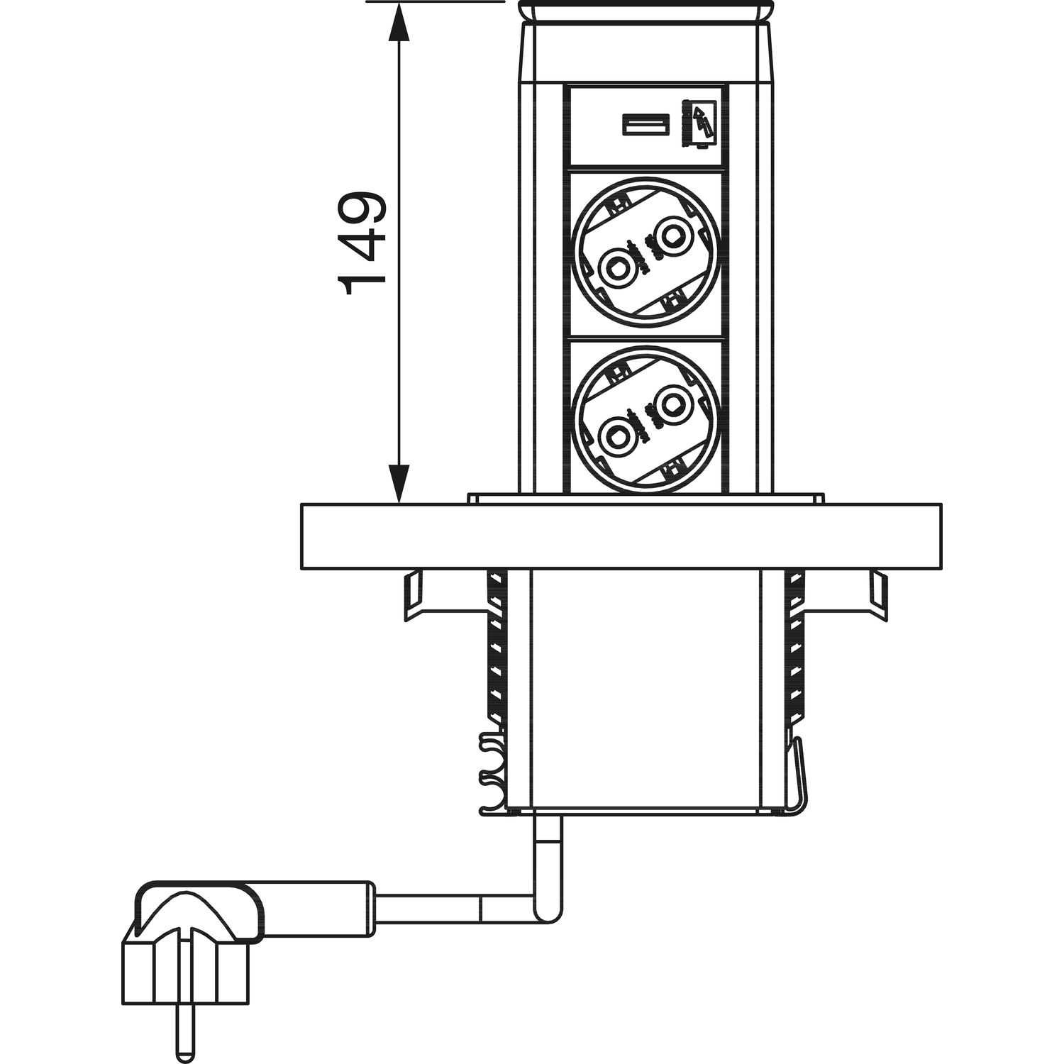 SCH EVOline Port Push pistikupesa torn, 2xSchuko,1xUSB, roostevaba kaas