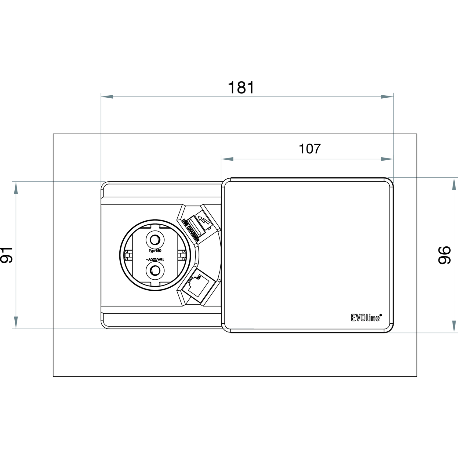 SCH EVOline Square 80 pistikupesa, 1xSchuko+USB laadija, roostevaba