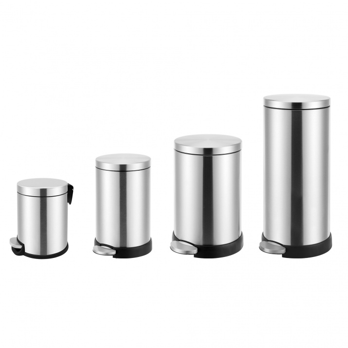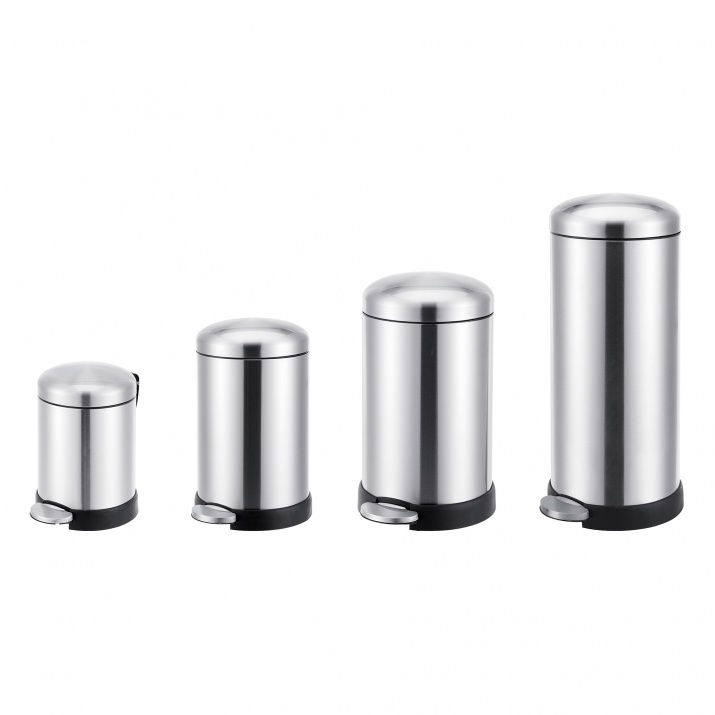 JNF prügikast 3L pedaali ja pehmelt sulguva kumera kaanega roostevaba harjatud
