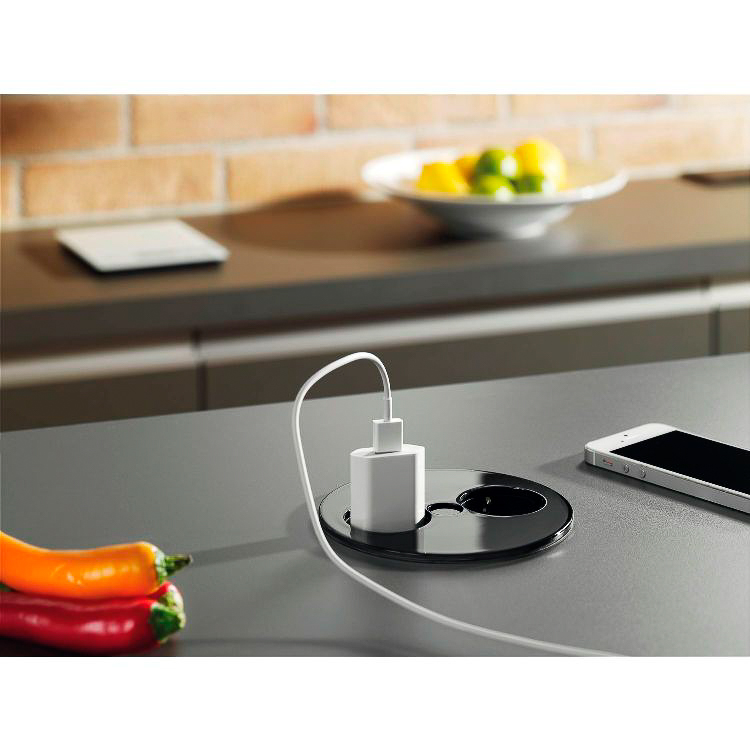 BACHMANN TWIST pistikupesa 2x220V, juhe 2m, must RAL9005 matt