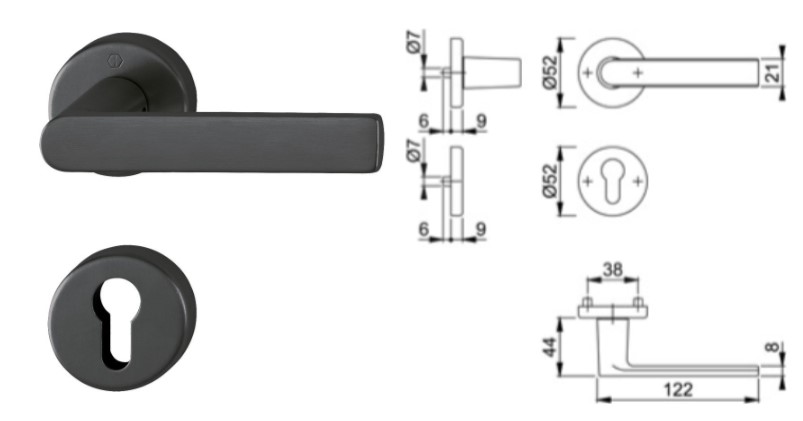 HOPPE HS Lükandukse link Toulon F9714 M Must 75-80mm /stift 10x73/ link PZ avaga + väljas süvistatud pikk pesa.